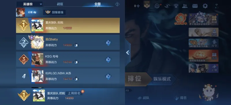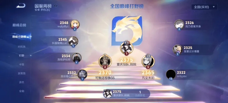 虎扑02月06日讯 登上巅峰打野榜第一,皖皖发文展示:国一哪吒、镜、云缨