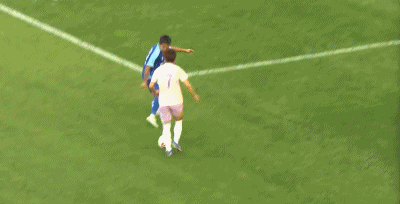 第70分钟,黄牌警告,钟文因假摔染黄